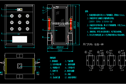 1、除以上单人风淋间尺寸外,还可以按照用户使用场地设计制作:转角风淋间、异型风淋间、风淋间通道等。