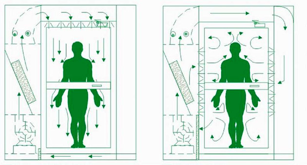 4、全自动红外感应吹淋,“杭法”红外感应器,正泰中间继电器,单向通道风淋室,从非洁净区进入,关门后红外线感应有人就吹淋,吹淋时双门自动锁闭,吹淋后入门锁闭,由洁净区出去时经过风淋室不吹淋以节省能源;