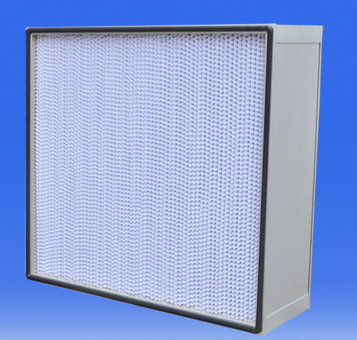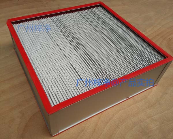 有隔板高效过滤器是用超细纤维作滤料、优质牛皮纸热滚压成形或采用胶版纸、铝铂作分隔板,与木框或铝合金框胶和而成,具有过滤效率高,阻力低,风量大的优点。有隔板高效过滤器多采用双面上胶的铜版纸作分隔板,目的是为了防止分隔板受冷热干湿的影响发生收缩,从而散发颗粒。适合于低级别的非单向流项目与各种净化设备和洁净厂房。有隔板过滤器中,铝隔板过滤器主要用于高温或高湿环境,纸隔板过滤器用在普通洁净环境。有隔板风量相对较大,可以用作耐高温过滤。
