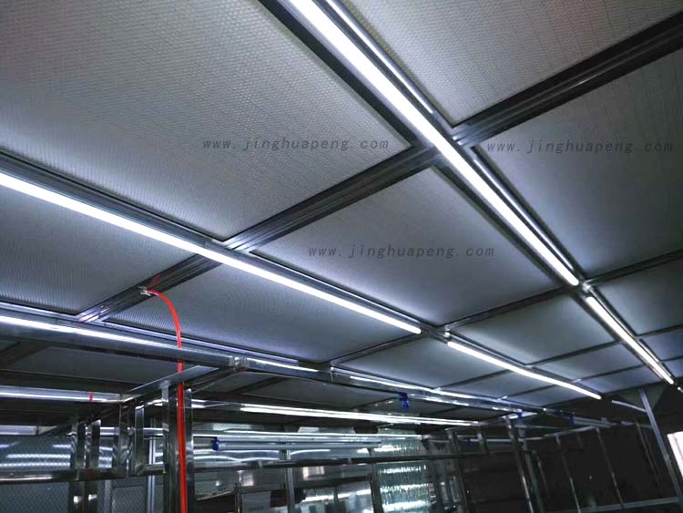 这个一般来说洁净棚顶部要满布FFU(常用FFU单元尺寸为1175*575*320mm),至于为什么要满布FFU是根据百级洁净室设计原理来设计的。