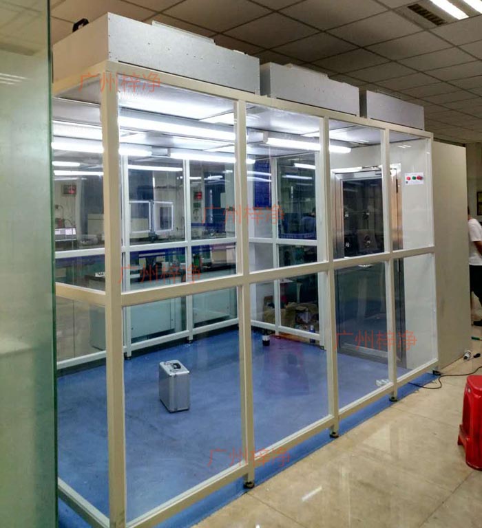 洁净棚采用工业铝材(或不锈钢方通、铁方通喷塑)作为框架,风机滤网机组(FFU)送风,四周悬挂防静电垂帘、钢化玻璃或有机玻璃,其内部净化级别可达到100-10000级。