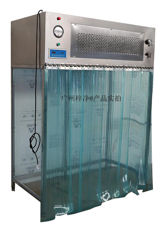 百级层流罩采用垂直单向流的气流形式,送风先要通过初效过滤器进行预过滤,将气流中的大颗粒粉尘粒子处理掉。经过预处理后的空气,再经过高效过滤器进行二次过滤,以起到充分保护高效过滤器的作用。在离心风机提供的压力下,通过高效过滤器,使之达到洁净要求。所有气流均经过高效过滤器处理,所以送风,排风均不带残余粉尘,避免了二次污染。由于在工作区域形成稳定的单向流,起到保护外部环境的作用。