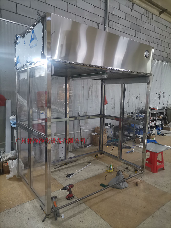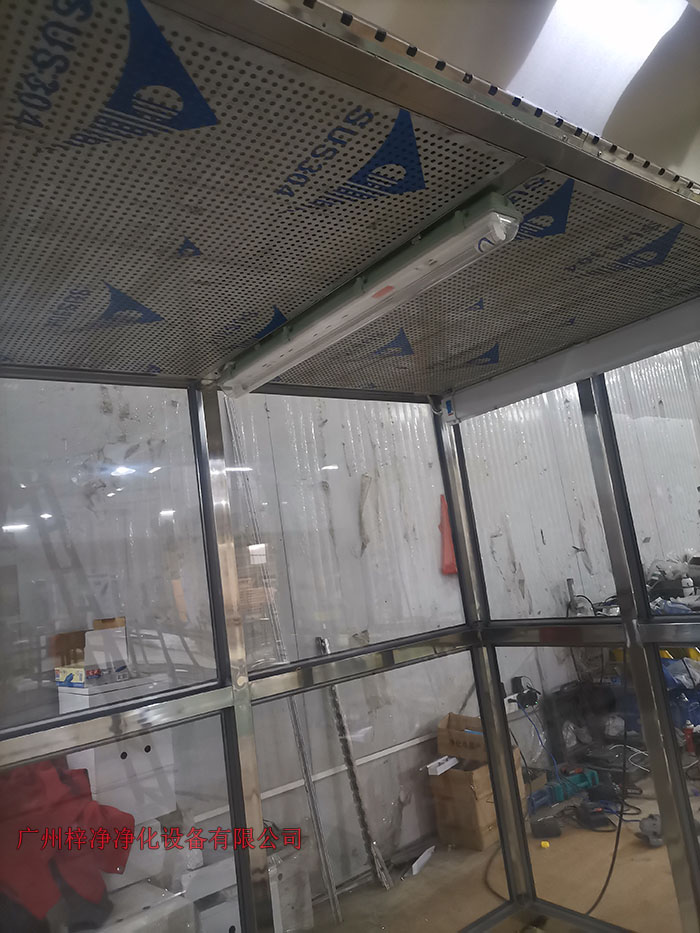 5、工作区两侧为不锈钢挡板,前后为条形防静电防尘垂帘,达到理想防尘效果