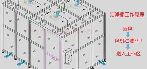 1.洁净棚顶部满布FFU(FFU可参考洁净棚FFU);
